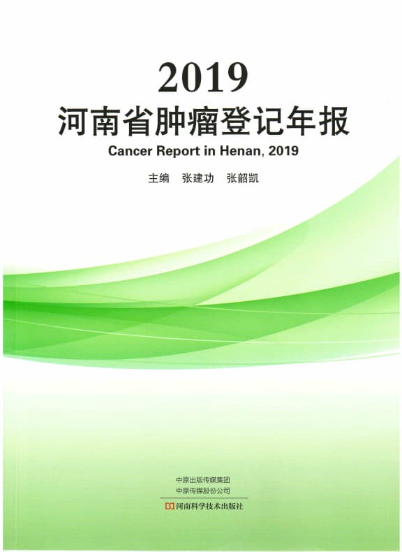 - 张建功,张韶凯,刁琳琪,郭万申,罗素霞,陈琼,刘曙正 . (2020-04-15) 2019河南省肿瘤登记年报 [M]. 河南科学技术出版社,郑州.