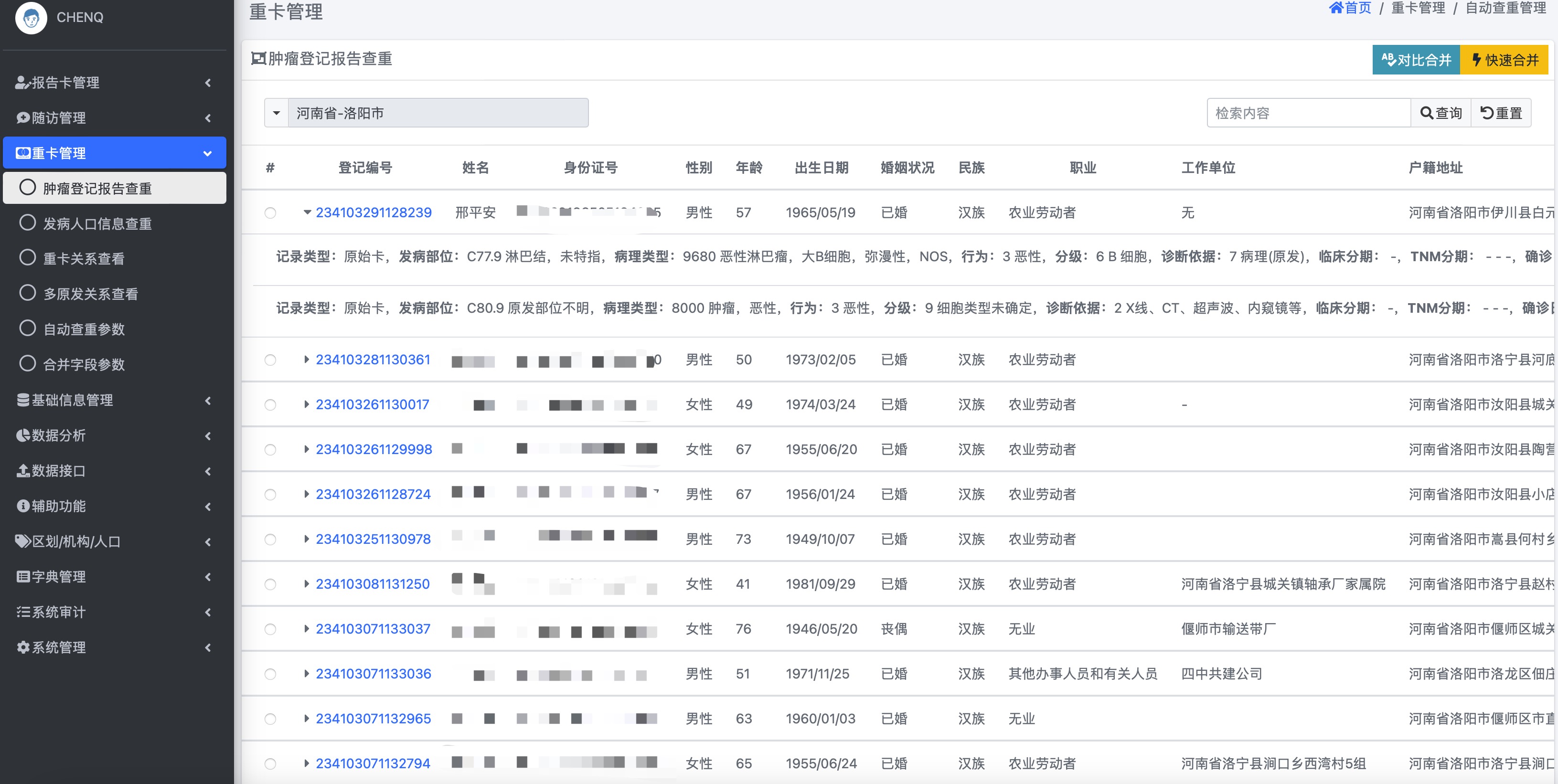 个人识别信息 --|> 肿瘤信息